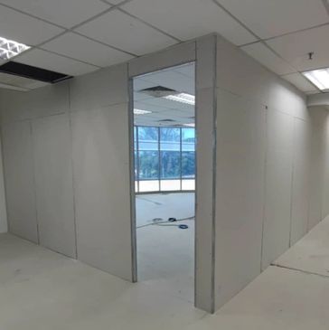 Membina pembahagi ruang menggunakan papan gipsum atau kaca.