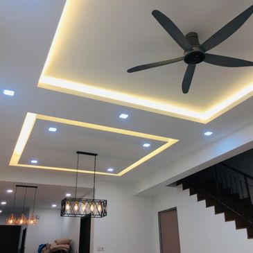 Pemasangan siling kapur (flat atau bertingkat/L-box) untuk pencahayaan hiasan.