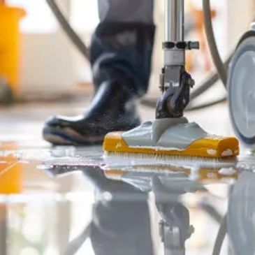 Membersihkan sisa debu halus, kesan simen, dan tumpahan cat selepas kerja binaan selesai.