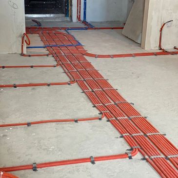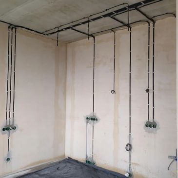 Pemasangan sistem elektrik lengkap untuk rumah termasuk poin lampu, kipas, soket, dan pendawaian khas untuk pemanas air atau penapis air.